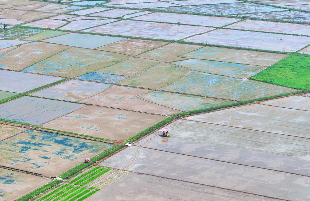 4月18日,在四川省绵阳市境内的G5京昆高速广元至绵阳段扩容工程路面工程施工现场,多台无人压路机进行沥青面层施工作业。