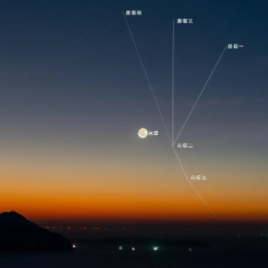 此次月掩心宿二时,月相为农历腊月廿六的残月,不至于过于明亮而影响对心宿二的肉眼观测;特别是掩终时,心宿二再现的过程更容易观测。而看不到掩星的地区,在凌晨的东南方低空可以看到一弯残月与微红的心宿二近距离相依相伴的场景。