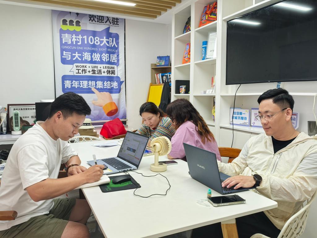 2025年6月25日,在浙江省温州市洞头区东屏街道东岙村,一群创业青年在“青村108大队”海创空间内工作。新华社记者 王俊禄 摄