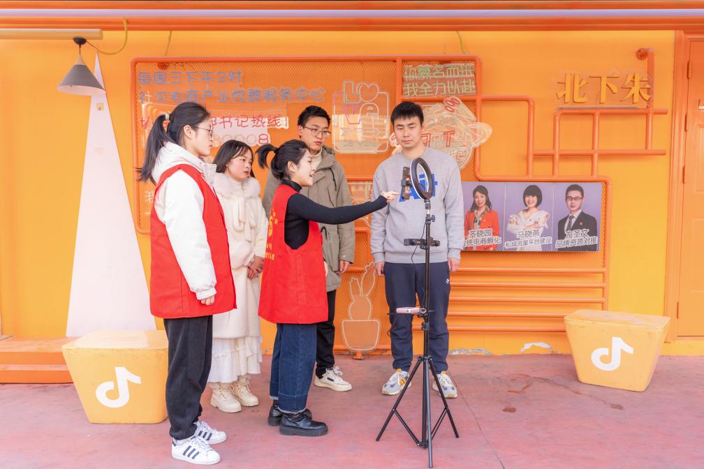 2024年11月,在浙江省义乌市福田街道江北下朱村社交电商产业党群服务中心“驿家亲”红色驿站里,青年交流直播经验。新华社发(受访者供图)