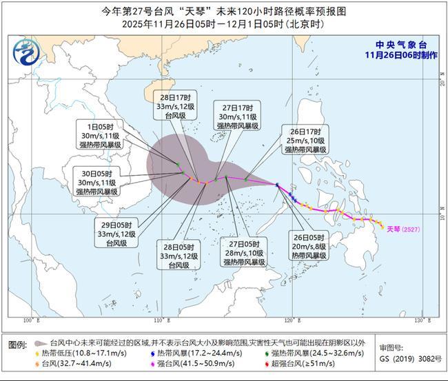 中央气象台11月26日06时发布台风蓝色预警: