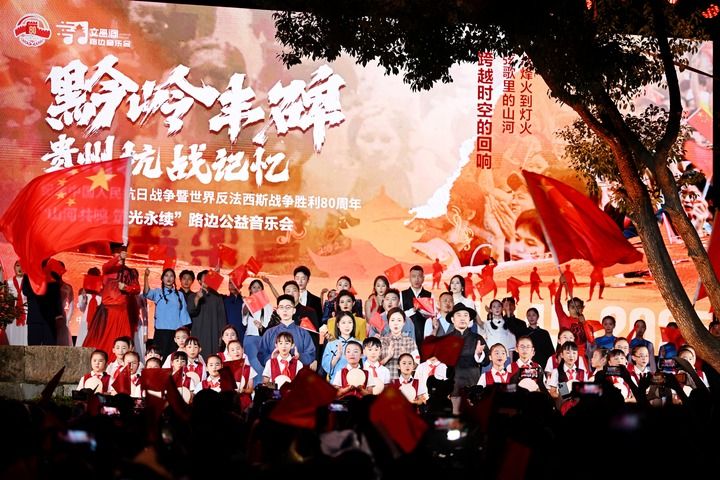 这是在贵阳市云岩区文昌阁日晷广场举办的主题为“黔岭丰碑 贵州抗战记忆”的路边公益音乐会(2025年8月22日摄)。新华社发