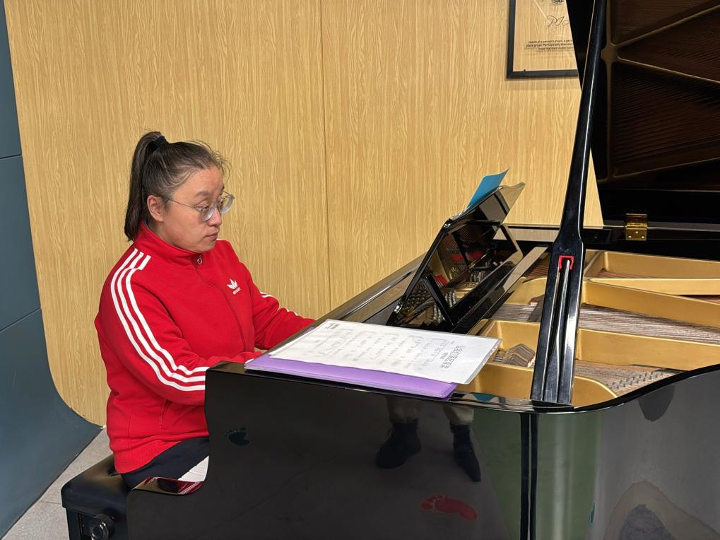 “弯湾”托管中心的学员正在弹奏钢琴曲。新华社记者郑可意摄