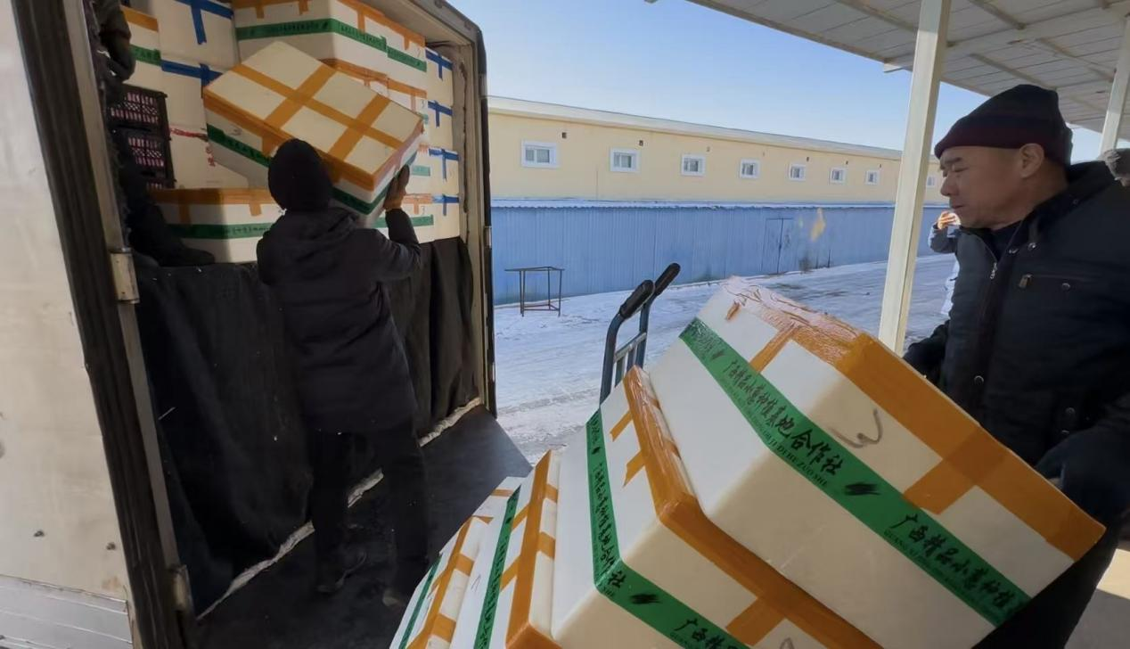 二连浩特市昊罡果蔬粮油进出口园区正在装货物的工人 新华网 李清摄