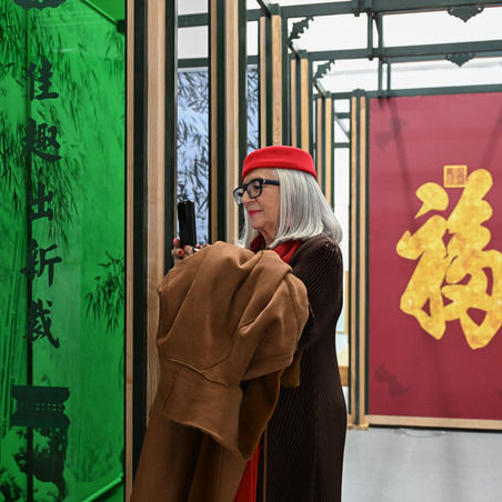 12月16日,在西班牙马德里中国文化中心,参观者在“安善萃锦——中式生活美学展”上参观。(程敏 摄)