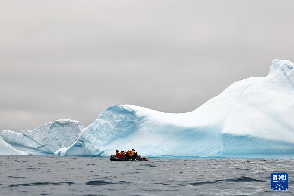 12月16日,探险者在南极洲拍摄海岸附近的冰山。新华社发(杨树摄)