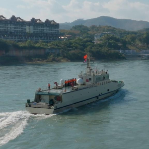 中方执法艇返航抵达景哈警务码头。(云南省公安厅水上巡逻总队供图)