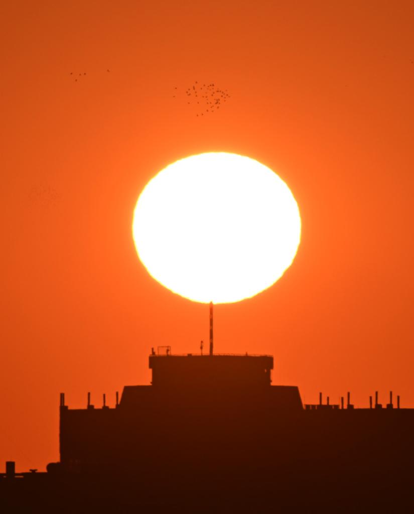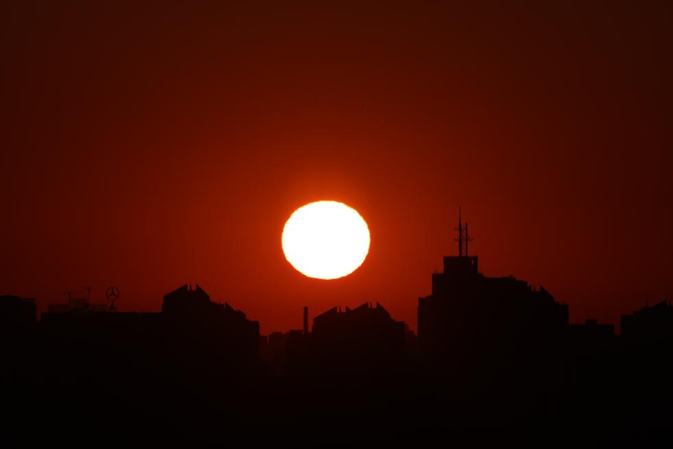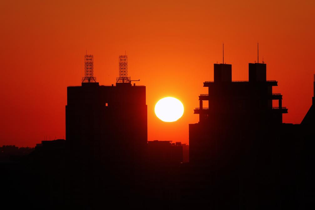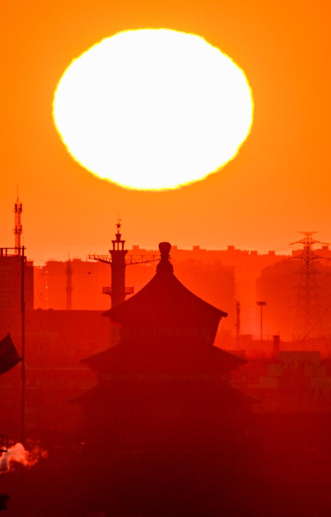 1月1日,在北京宣武门附近拍摄的日出景象。摄影:陈晔华