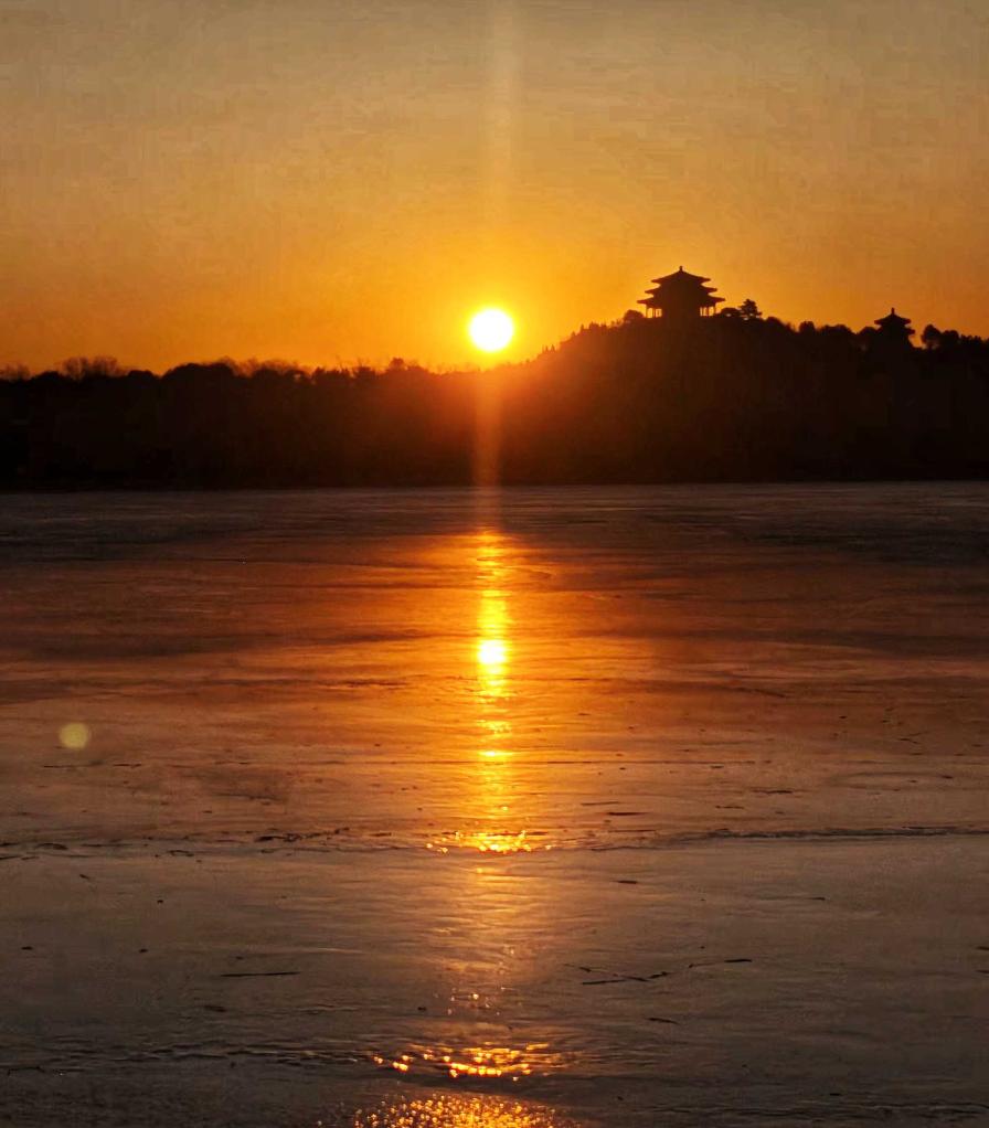 1月1日,在北京北海公园拍摄的日出景象。摄影:顾荃
