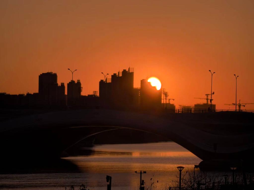 1月1日,在北京通州大运河边拍摄的日出景象。摄影:冯子晔