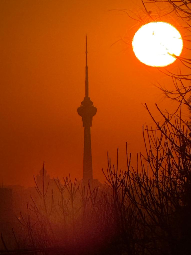 1月1日,在日出时分拍摄的北京电视塔。摄影:温红征