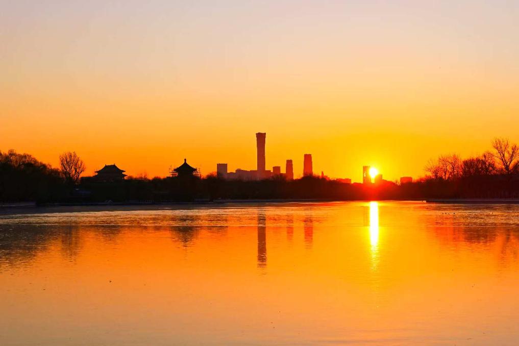 1月1日,在北京什刹海西海湿地公园拍摄的日出景象。摄影:孙瑞博