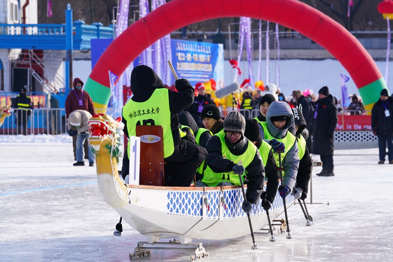 1月10日,冰封的哈尔滨松花江上,一声声激昂的加油呐喊声响起。首届“哈工大-剑桥-牛津(哈剑牛)杯”冰上龙舟国际友谊赛在“冰城”哈尔滨开赛。14支队伍演绎了一场“速度与激情”的体育竞技。