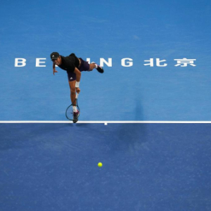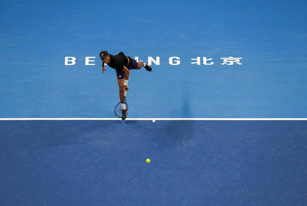 2025年9月30日,勒纳·钱在中国网球公开赛男单半决赛中发球。