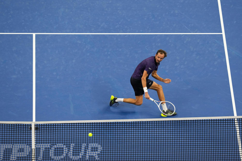 2025年9月30日,梅德韦杰夫在男单半决赛中回球。