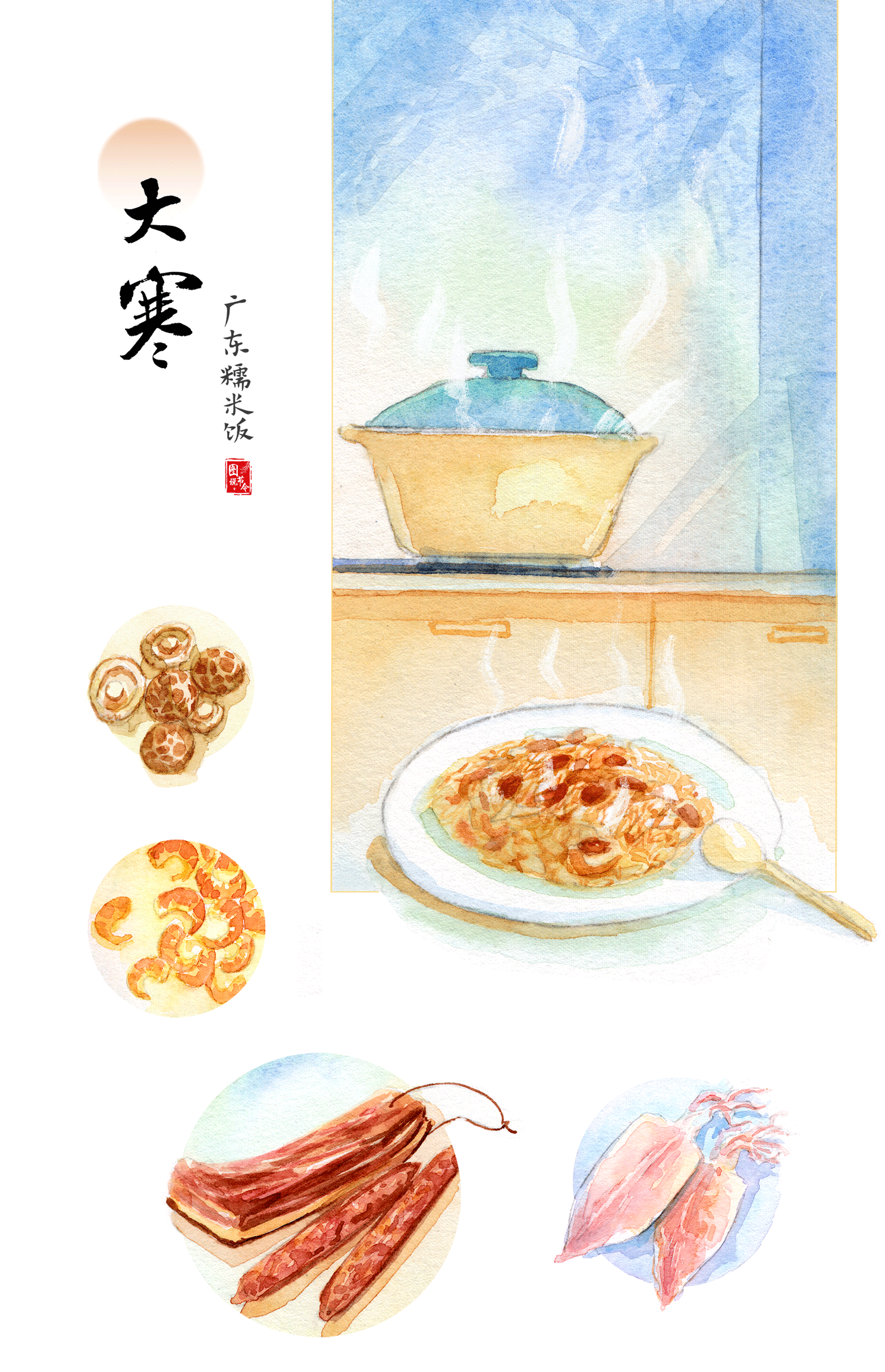 拌入腊味、虾米、干鱿鱼、冬菇等