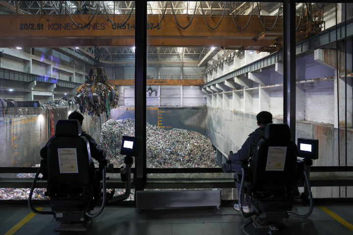 2026年1月14日,工作人员在杭州临江环境能源有限公司内工作。新华社记者 江汉 摄