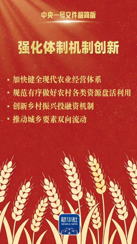2026年中央一号文件2月3日发布,这是“十五五”首个中央一号文件。这份名为《中共中央 国务院关于锚定农业农村现代化 扎实推进乡村全面振兴的意见》的中央一号文件,对今年“三农”工作做了六个方面的重点部署。跟随我们整理的这份极简版海报,一起学习。