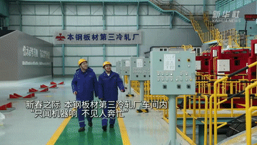 新春之际,本钢板材第三冷轧厂车间内“只闻机器响、不见人奔忙”。自动化作业线上,代表本钢高端冷轧产品的超薄高强钢正源源不断生产出来。
