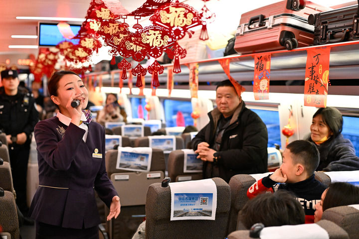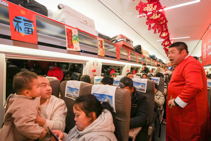 春运期间,中国铁路上海局集团有限公司南京客运段在G1481次列车上精心组织了南京面塑、快书、送福字、歌舞等文艺活动。