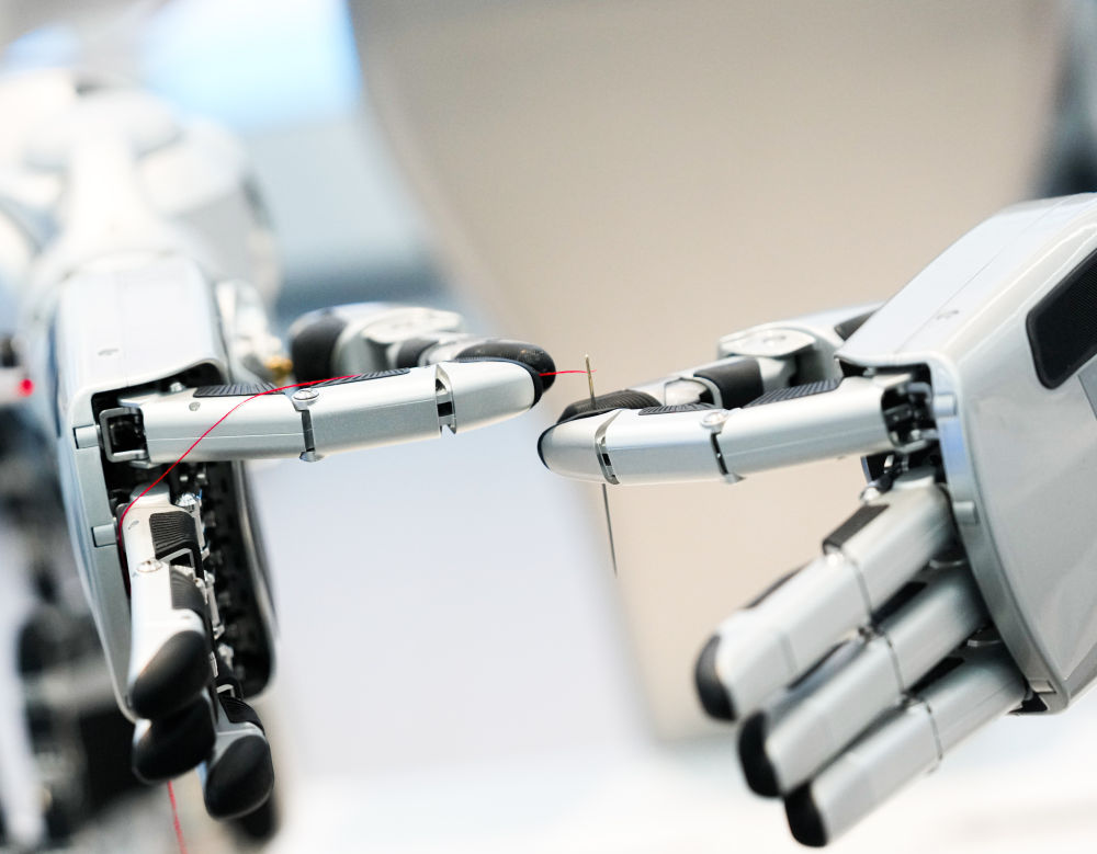 灵巧的机器手可以完成高精度的穿针引线动作。