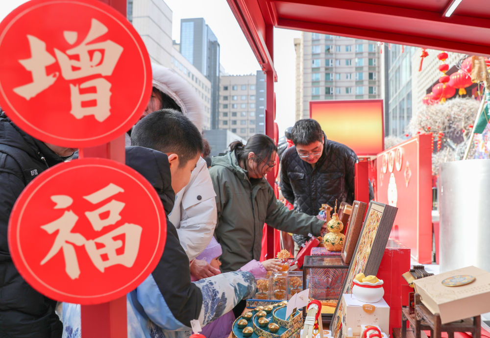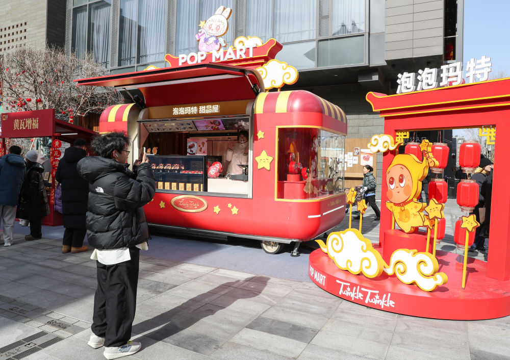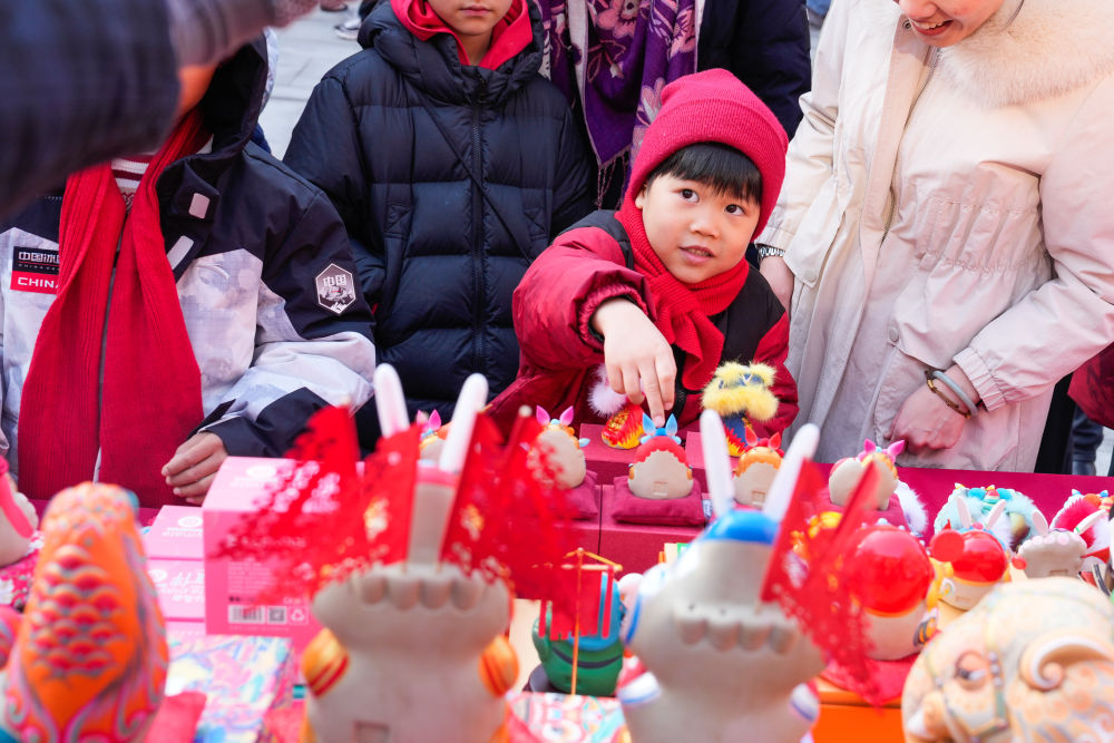 2026年2月7日,市民游客在上海市南京路步行街一家春节限定潮玩快闪店挑选商品。