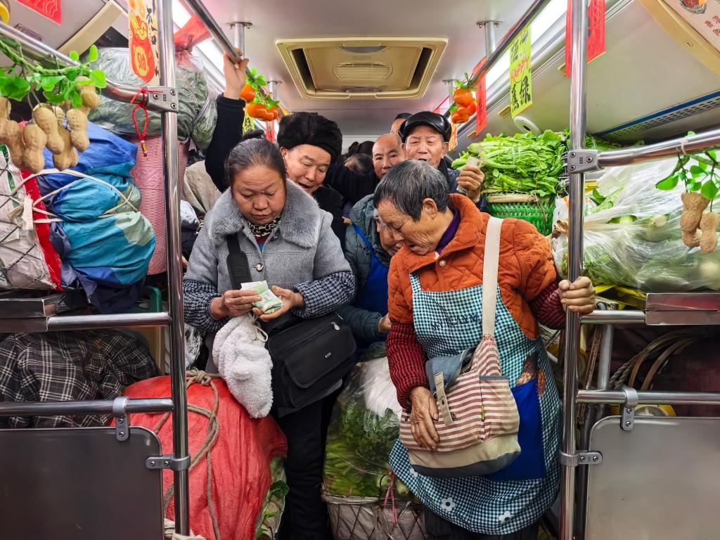 作为老年人,她可以免票,来回只需花4元菜篮子运费,每两三天进城卖一次菜,一次能挣一百多元。“过年还能给孙子孙女发压岁钱。”她笑盈盈地说。