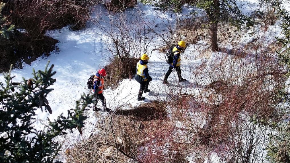 国铁成都局成都电务段松潘通信工区的职工前往检修点。新华社发(张能 摄)