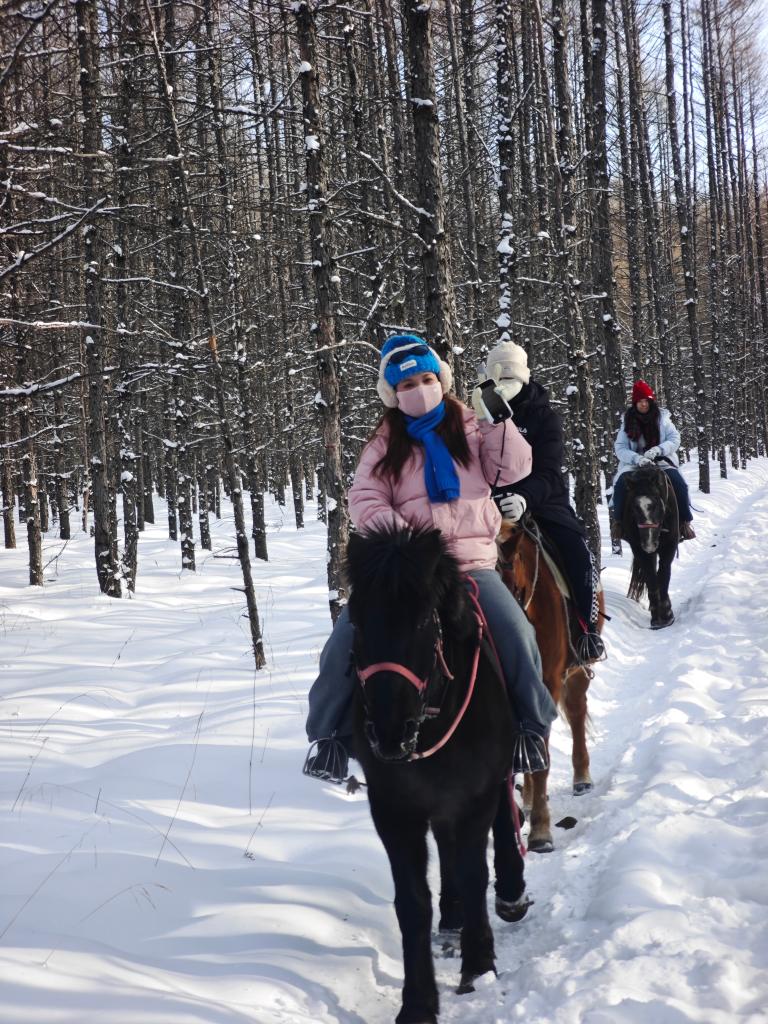 冬季旅游的火热,也带火了当地各类特色业态。阿尔山市北境马术俱乐部负责人张彦波介绍,马年将至,骑马穿越林海雪原备受游客青睐,每天有七八十人前来体验。俱乐部免费提供的拍照服务,还吸引了不少旅行博主打卡分享,让他的社交账号粉丝涨至近万人,客流源源不断。