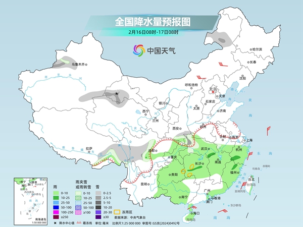春节假期开端,我国降雨增多增强,西南、江南等局地雨势较强,正值出行高峰时段,建议公众关注临近预报预警信息,提前规划行程,如果驾车外出,需保持距离、减速慢行,注意防范道路湿滑、能见度降低等不利影响,