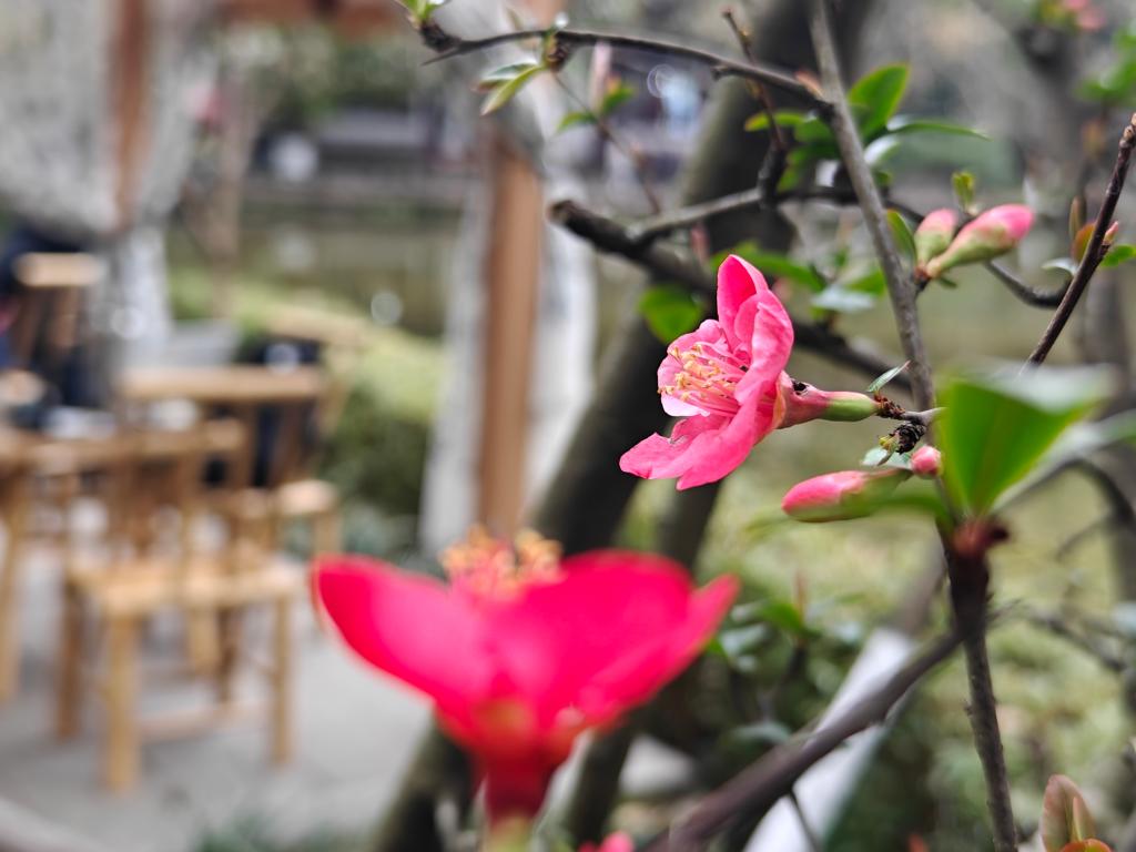 一株迎风吐蕊的海棠。新华社记者 谢佼 摄