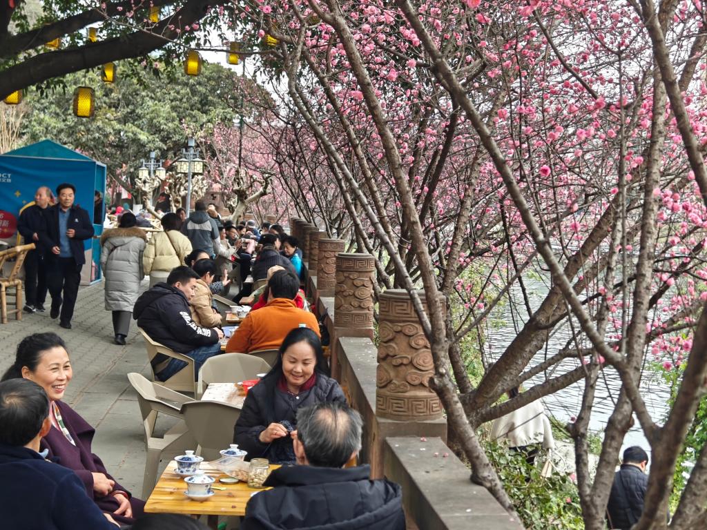 新华社成都2月17日电(记者谢佼)“快来锦江边赏花!”农历正月初一,成都市民陈大姐叫上亲戚,迫不及待来到锦江边的望江楼公园踏春。一丛丛深红的海棠、怒放的红梅、清雅的腊梅、摇曳的虞美人……人们纷纷举起手机,捕捉精彩的瞬间。