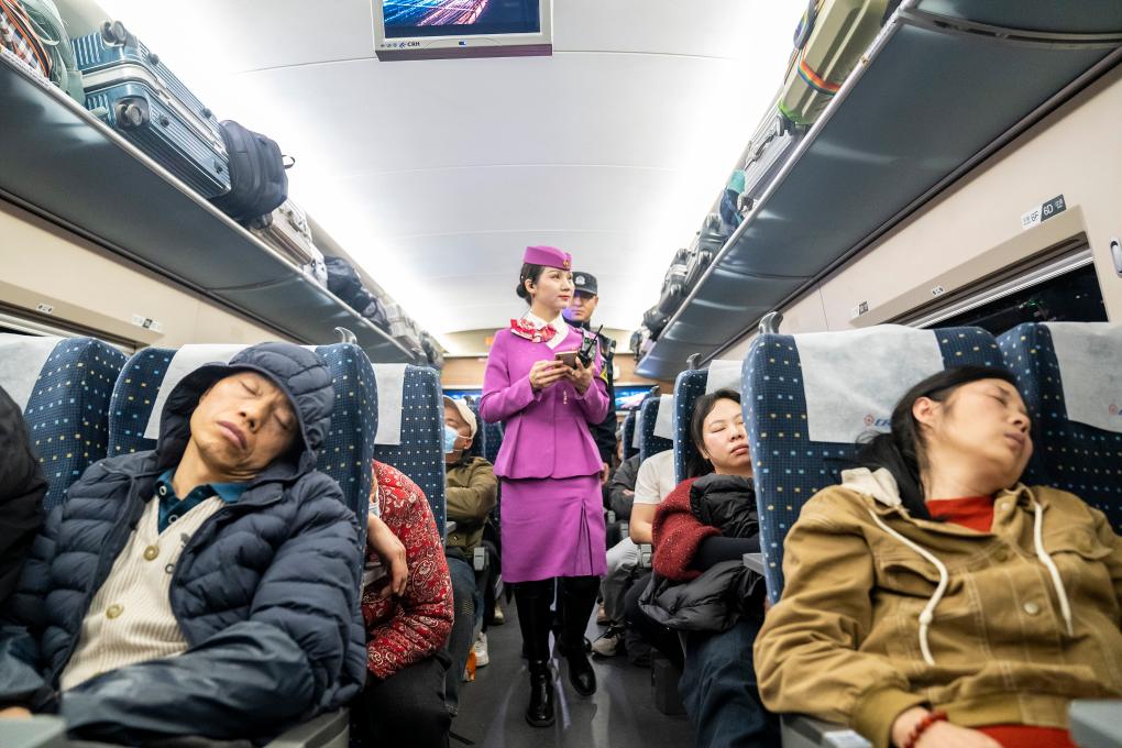“以前,旅客乘坐夜间动车,大多是没抢到白天的票的无奈之举。”张渝静说,作为在客运一线坚守数十年的老铁路职工,她见过太多春运里夜间绿皮车的拥挤与匆忙。