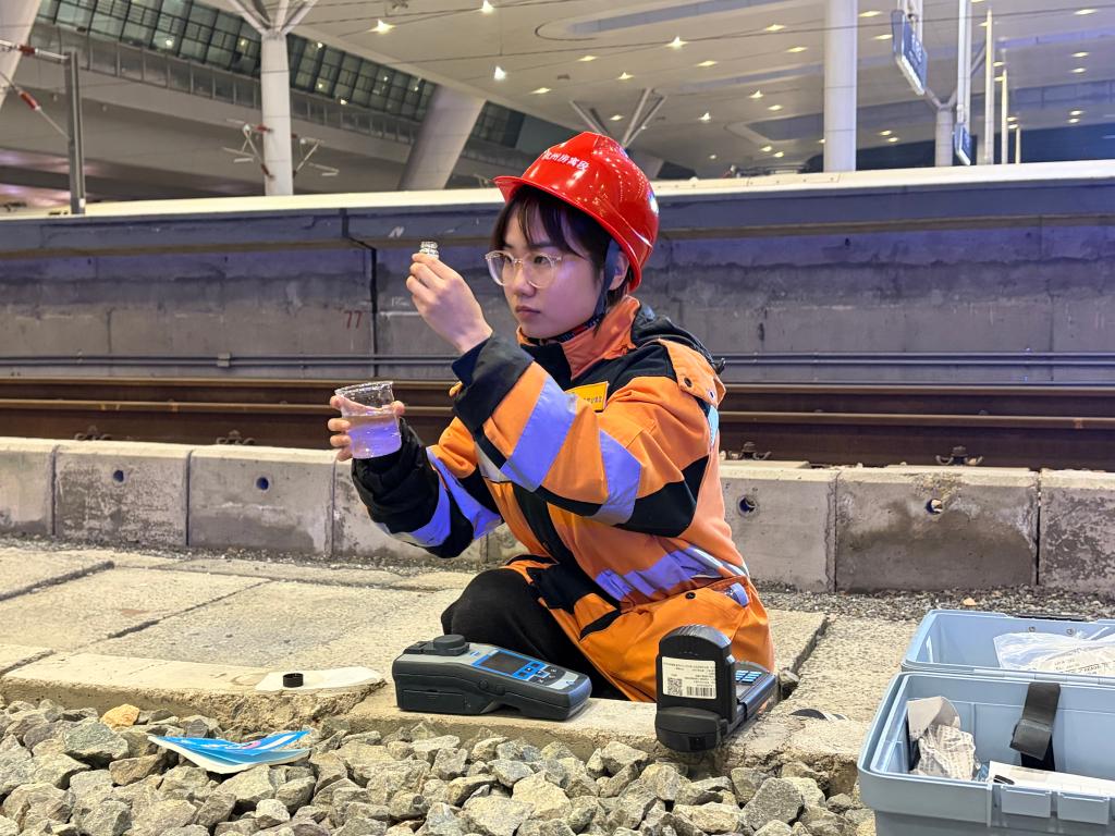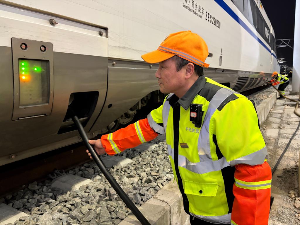 夜渐深,进入列车停运的“天窗期”,由管道工、化验工等工种组成的作业小组进入股道,各司其职开始工作。春运期间,他们加大了维修保养的频次,保障设备的稳定运行。