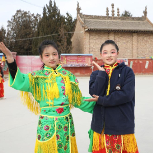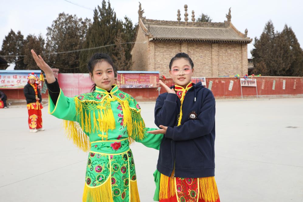 王欣怡、王欣语姐妹俩自小学习舞蹈,看着社火长大的她们已连续两年参加当地社火表演。“社火表演热闹有趣,就像一种角色扮演,让我们对传统文化有了直观的感受。”王欣怡说。