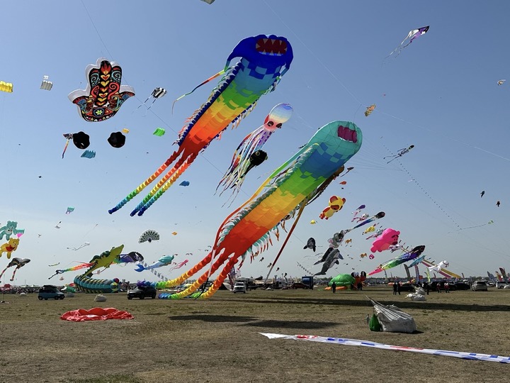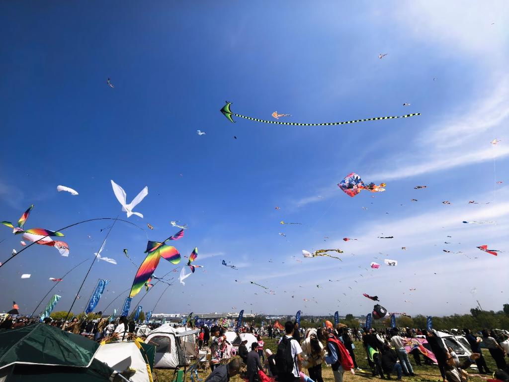 广场郊野,长线牵起春光。东风不急不躁,千姿百态的风筝在空中飞扬,人与自然也在这一刻和谐共生。