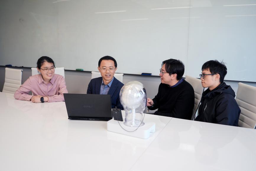 洪波(左二)和团队学生们一起讨论。