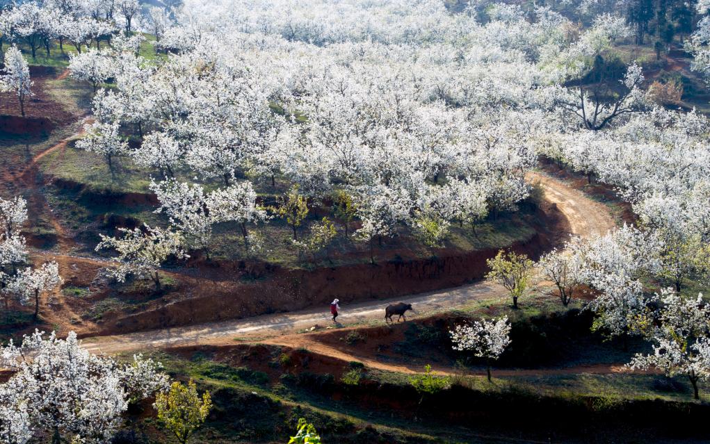 3月20日在云南省文山壮族苗族自治州文山市坝心彝族乡拍摄的梨花。新华社发(熊平祥摄)