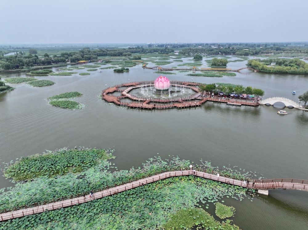 河北雄安新区白洋淀荷花大观园景色(2024年7月9日摄)。新华社记者 牟宇 摄