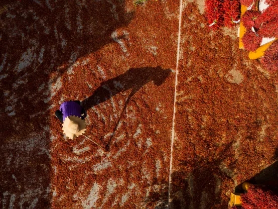 这是循化县农民在晾晒辣椒。新华社记者 张龙 摄