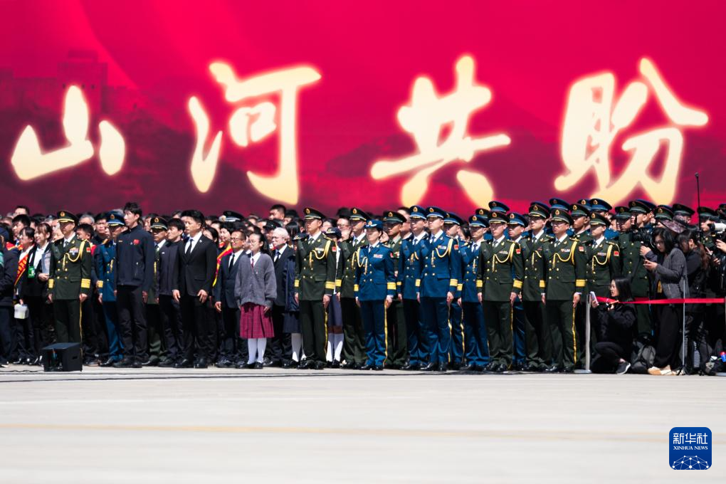 烈士家属代表、奥运健儿、民族团结进步模范、劳动模范、少先队员、港澳台师生代表都来了。雄壮的《义勇军进行曲》奏响,全场齐唱国歌。