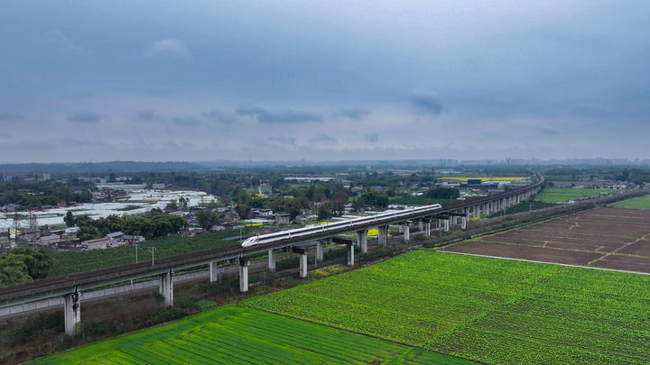 一辆列车运行在成都与眉山间(2026年3月3日摄)。新华社发(韩旭刚摄)