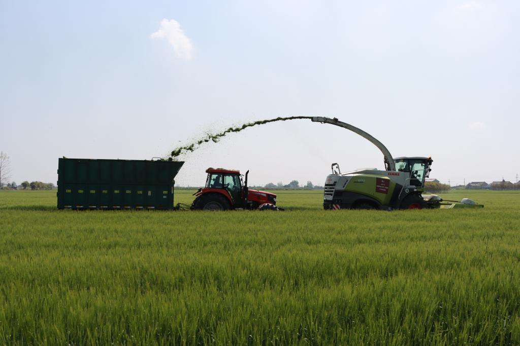 在江苏省盐城市大丰区,种粮大户沈琴展示青贮大麦收割。(受访者供图)