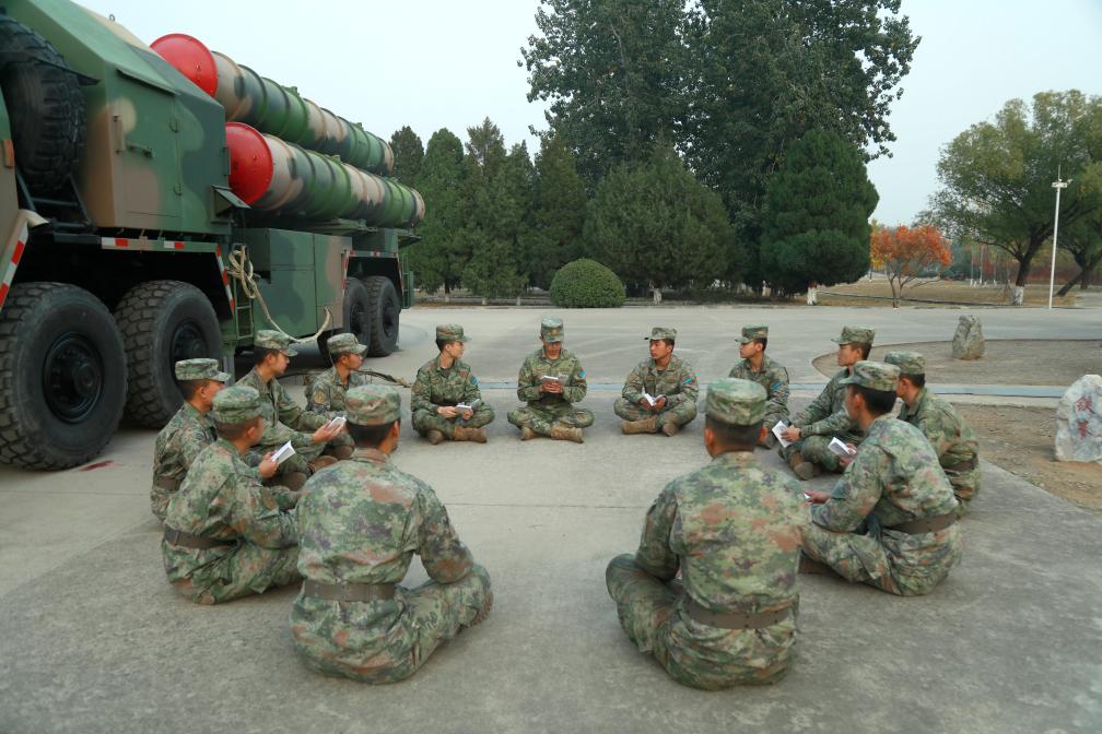 中部战区空军“模范地空导弹营”开展“鸣镝讲堂”交流活动(2022年10月25日摄)。新华社发(赵胜之 摄)