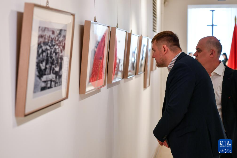 6月5日,在俄罗斯首都莫斯科,嘉宾参观纪念中国人民抗日战争暨世界反法西斯战争胜利80周年图片展。