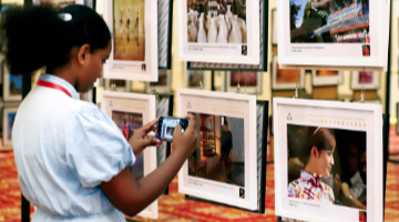 6月6日在东台市博物馆拍摄的以花鸟为题材的发绣作品。