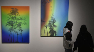 12月21日,参观者在中国美术馆拍摄展出作品。