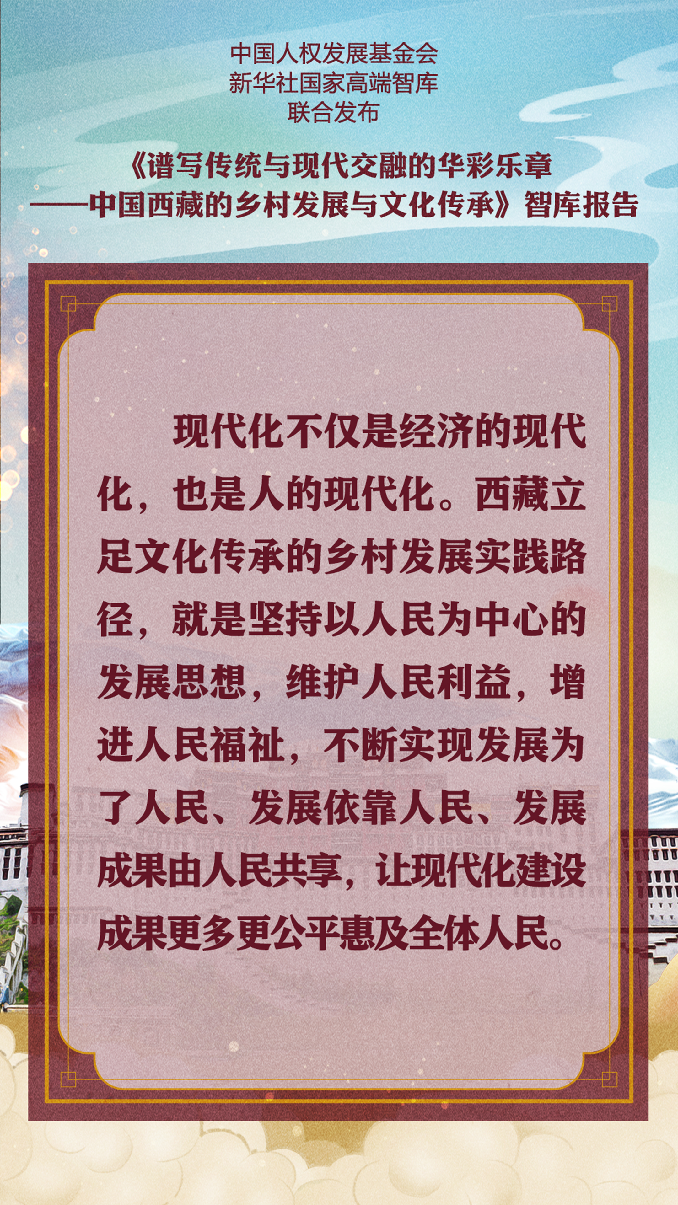 中国人权发展基金会、新华社国家高端智库10月16日在北京联合发布中英文智库报告《谱写传统与现代交融的华彩乐章——中国西藏的乡村发展与文化传承》。
