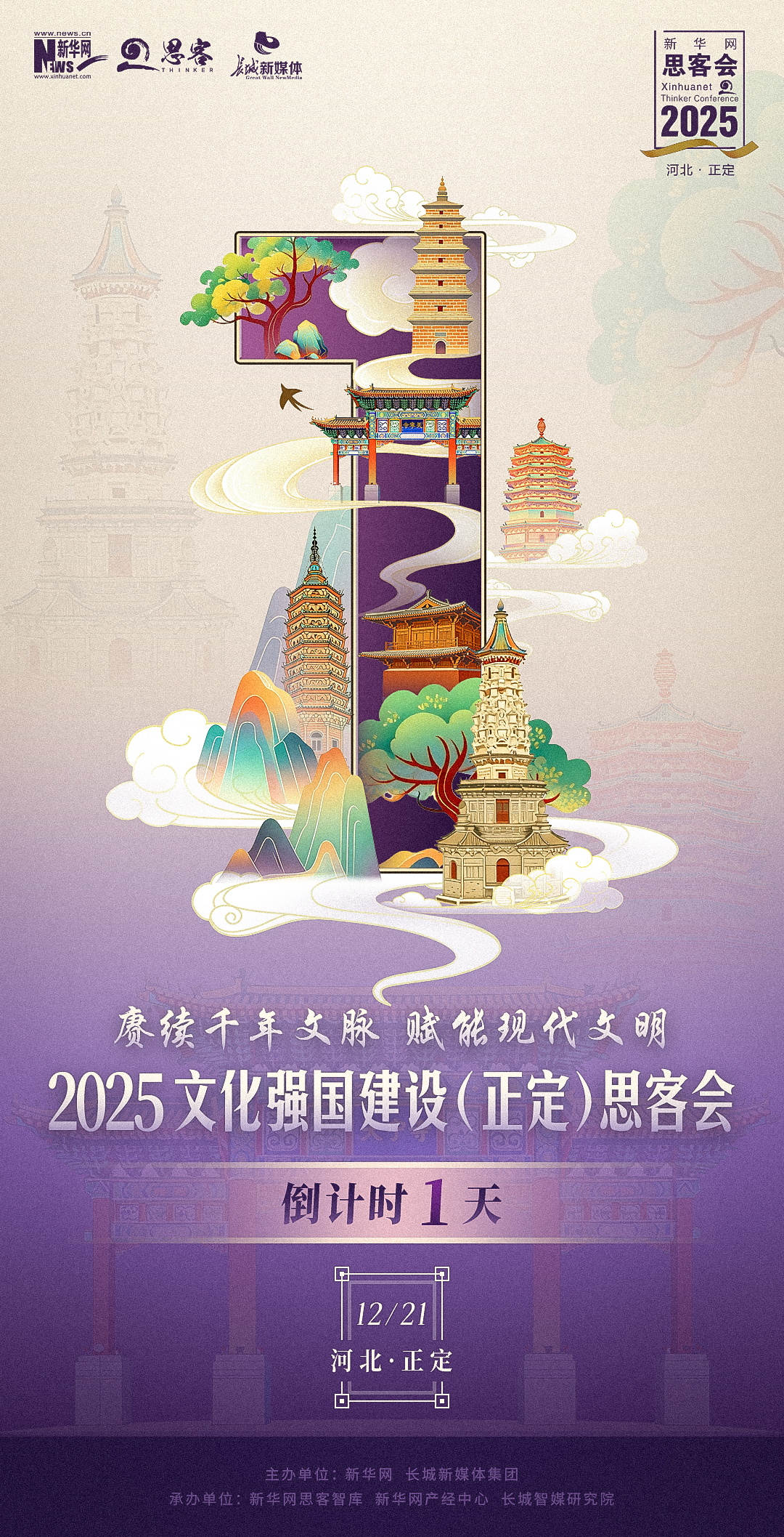 为推动文化繁荣,探究中国式现代化的文化动力,为文化强国建设凝聚智慧,由新华网与长城新媒体集团共同主办的“赓续千年文脉 赋能现代文明”2025文化强国建设(正定)思客会将于12月21日在河北正定举行。距离活动开幕还有1天。