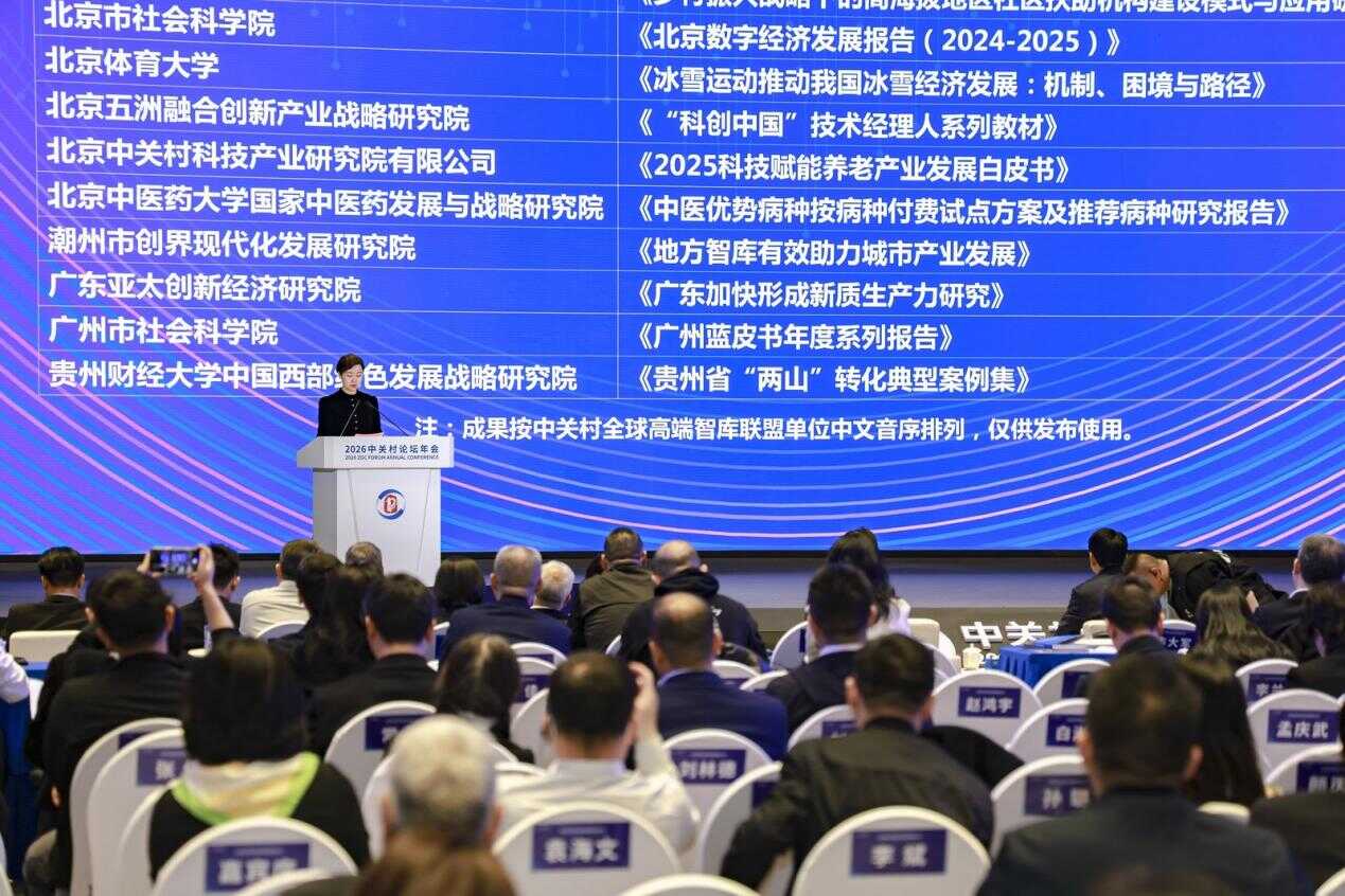 成果发布环节,论坛发布多项智库成果。一是《“一带一路”倡议下有韧性和可持续的创新》,该书围绕“一带一路”沿线国家和地区的韧性与可持续创新问题,汇集多国专家学者的研究成果。二是《北京国际科技合作发展报告(2025)》,该书作为首都高端智库年度力作,系统梳理了北京在国际科技合作、技术转移、人才交流与创新生态构建等方面的实践与成效,为全球创新网络中的开放合作提供了兼具理论深度与行动参考的“北京方案”。三是智库联盟2025年度48项优秀成果。其中包含41项智库研究成果和7项科技成果。成果聚焦数字经济、绿色发展、未来产业、科技治理、区域协同、国际合作等关键领域,既有《京津冀协同创新指数(2026)》《中国能源展望2025-2060》等战略研究,也有金砖国家数字主权、澜湄数据跨境合作、“一带一路”技术示范等国际合作成果,还有一批面向产业一线的新技术、新装备、新应用。上述成果分别由亚历山大·约万诺维奇、李军凯和中国科学院科技战略咨询研究院副院长鲁晓发布,施普林格·自然集团大中华区政府事务和政策总监胡泽英以及冀祥德进行推荐。北科院党组书记,北京市科学技术委员会、中关村科技园区管理委员会党组成员、副主任刘晖主持上述环节。